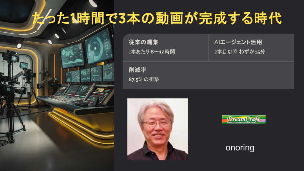 映像制作の現場で45年、数百の現場を見てきた私が断言しよう。いま、動画制作の世界に「不可逆的な転換点」が訪れている。 あなたが朝スタジオに入り、コーヒーを一口飲んで「今日は企業研修動画を3本仕上げなきゃ」と考えたとき、その3本すべてをたった1... -