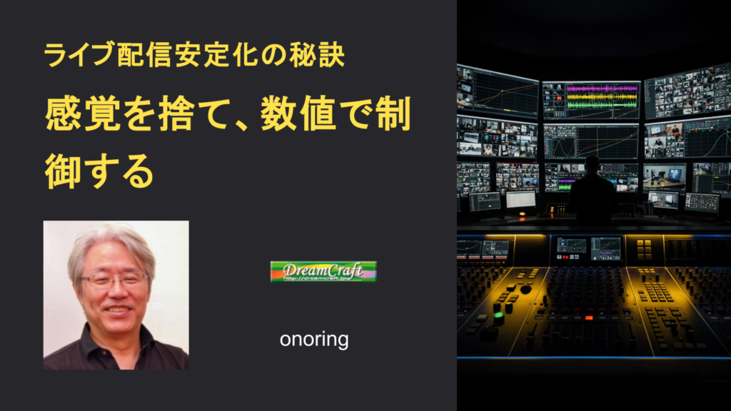 ――感覚ではなく数値で制御する、プロの設計思想 なぜ配信は、あの瞬間に止まるのか 一度でも経験した者にしか、この恐怖はわからない 開始3分前。マイクテストは正常、カメラは全て映っている。プレビューモニターの波形も安定している。ところが、本番開... -