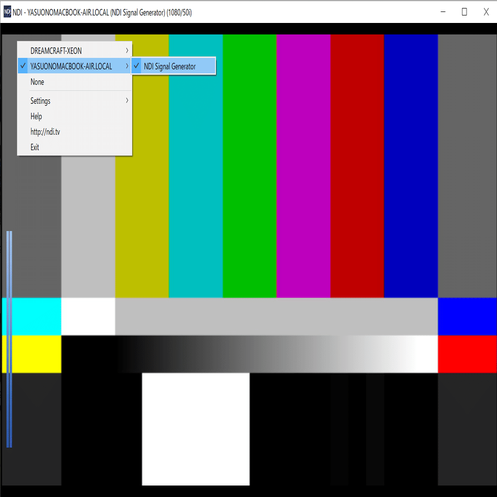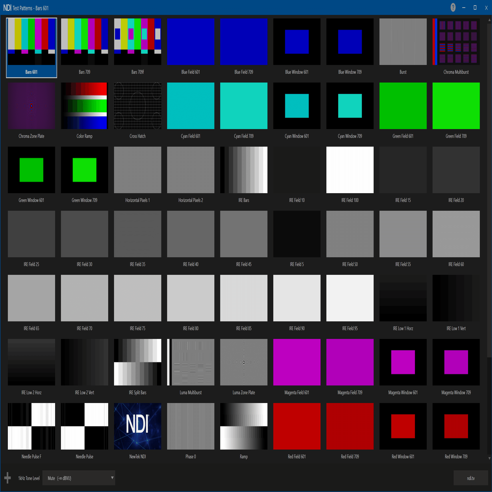 映像業界でNDI(ネットワーク・デバイス・インターフェース)とはTricasterで有名なNewTekの提唱するIPネットワークで映像、音声をやり取りする仕掛けです。非破壊検査(ひはかいけんさ、NDI、英: non destructive inspectionではありません。従来のように同軸ケーブルでのSDI接続や、HDMIケーブルでの接続ではなくLANケーブルで繋げていく信号の約束事のことです。すでにピンと来る人は可能性を感じる事でしょうが、ネットワーク内部のことで、目に見えにくいことから苦手だと感じる人も多いようです。実は今までも様々なメーカーから独自のIP伝送の機能は発表されてきているのですが、独自のシステムの中での提供、高価格です。その中で基本的にはライセンスフリーで普及を進めているのがNDIなのです。ここでは、NDIで実現する機能と、可能となる拡張性について見ていきましょう。まず専用のアプリとしてNewtekのNDI.tvから提供されたのは、2017年の事。現在ではVizrtグループのブランドとなったNDIは当初は対応するシステムもTricaster以外には実験的なアプリ(カラーバーなど映像のテスト信号発生ソフト、NDIのモニターソフト)など無償のNDItools提供からスタートしたのです。機能拡張のプラグインがさまざまな映像アプリ内へ取り入れ始めた最近では、スタンダードなIP伝送方式として定着してきました。Windows用とMacOS用に用意されているNDI toolsではありますが、その開発元が微妙に違うために名称やインターフェースなどが多少異なっています。ご覧のようにWindows用の方がネットワーク周りの管理ソフトが充実しているのがわかります。実際の使用するマシンの性能にもよりますが、Windowsの環境の方が素直な印象です。パソコンによって用途が決まってくると思いますが、ネットワークの中で複数の機器が使えるNDIなので両方のOSの使えると便利です。NDIは、NewTekが提供するTriCasterや3Playなどのシステムでサポートされているが、これらシステムのユーザー以外でもNewTekが提供するNDI対応ソフトウェアを入手すれば、NDIを体験することが可能だ。機能別に主なアプリを見てみようNDI信号の生成TestPatternsカラーバーをはじめ、基準音の発生など、ネットワーク内のさまざまなテストに有効です。画面を選択するだけでNDIで出力される静止画像を切り替えていく事ができます。