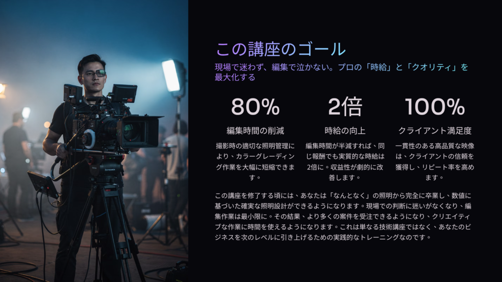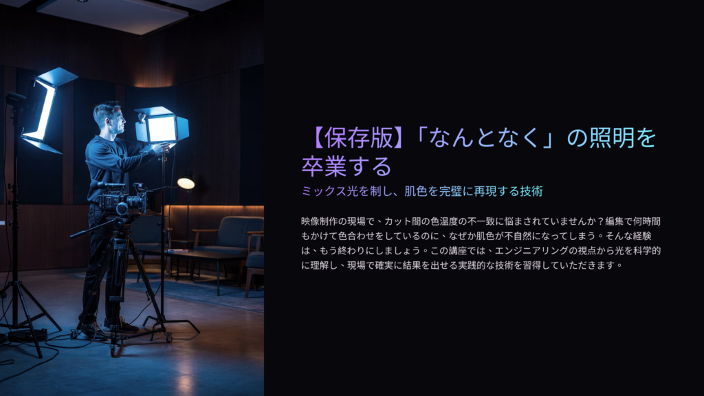 - 照明の「固定ケルビン」が、なぜ編集時間を劇的に短縮するのか
