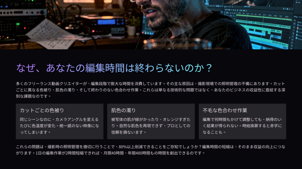 「編集で色を合わせる作業」を卒業して、「クリエイティブを磨く時間」を取り戻しませんか?