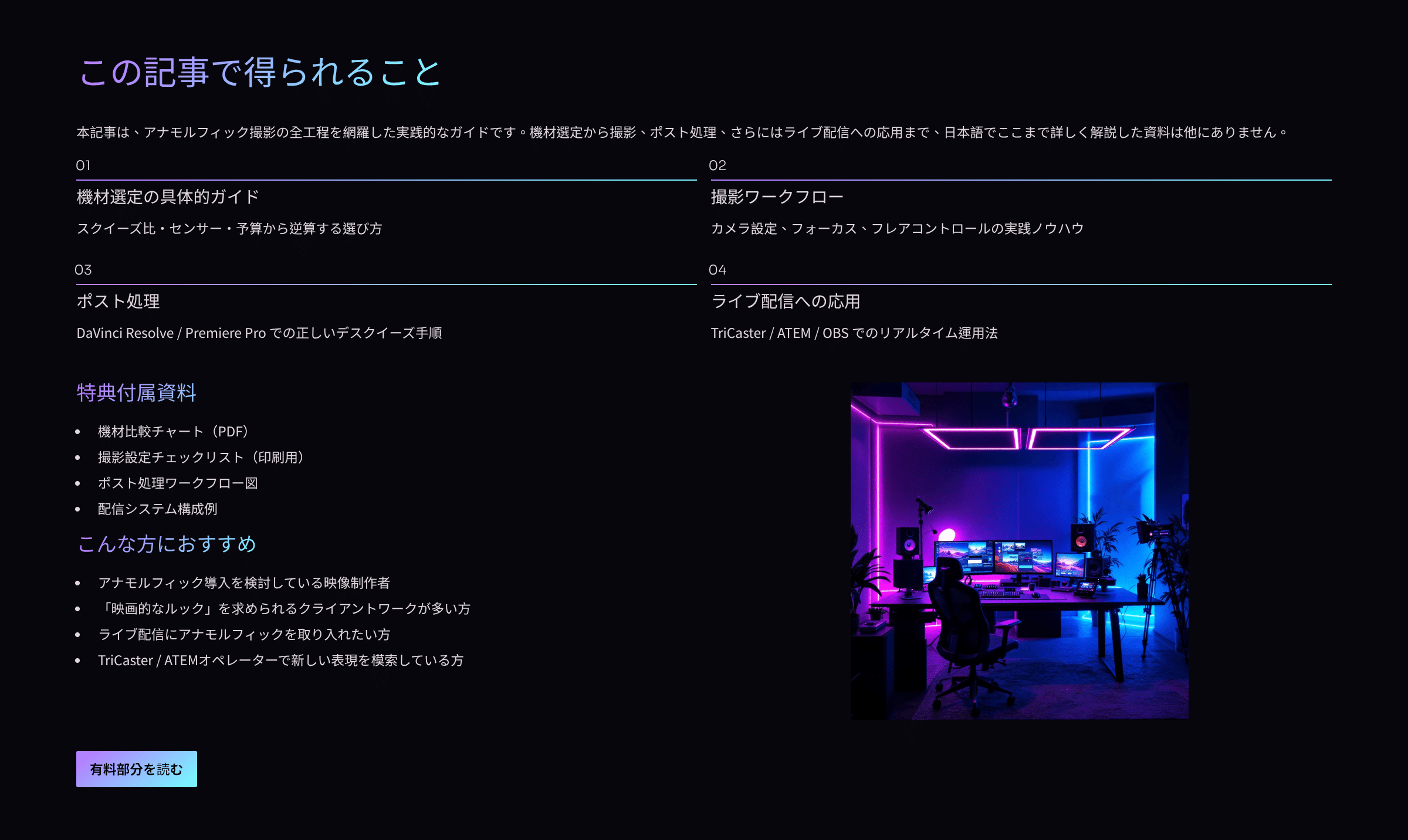 - すでにアナモルフィック運用を熟知しており、基礎的な情報が不要な方