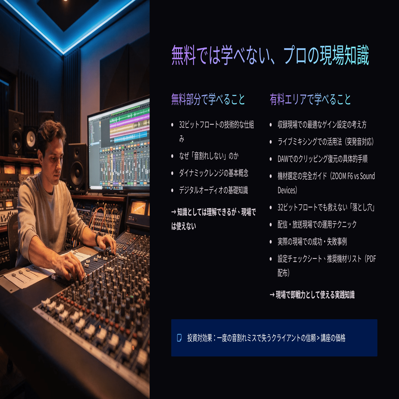 - 32ビットフロートの技術的な仕組みを正確に理解し、現場で自信を持って説明できる