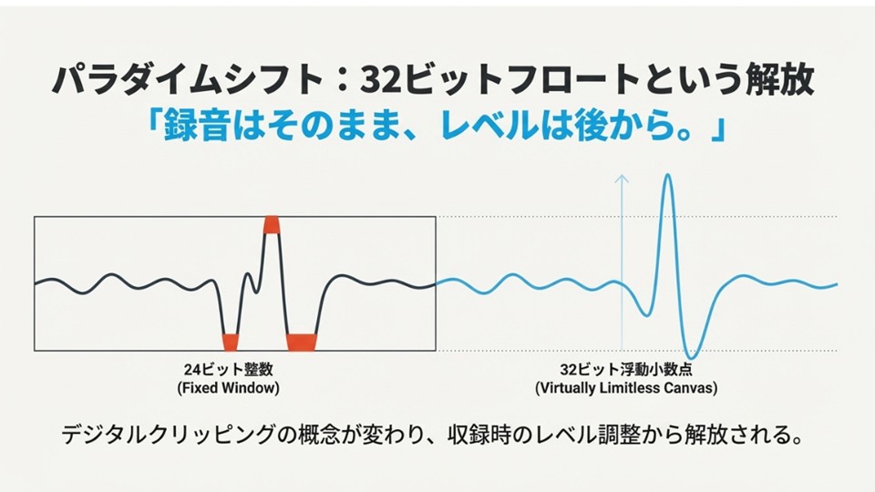 答えは単純明快だ。32ビットフロートは、音割れという概念そのものを過去のものにする可能性を持っているからだ。