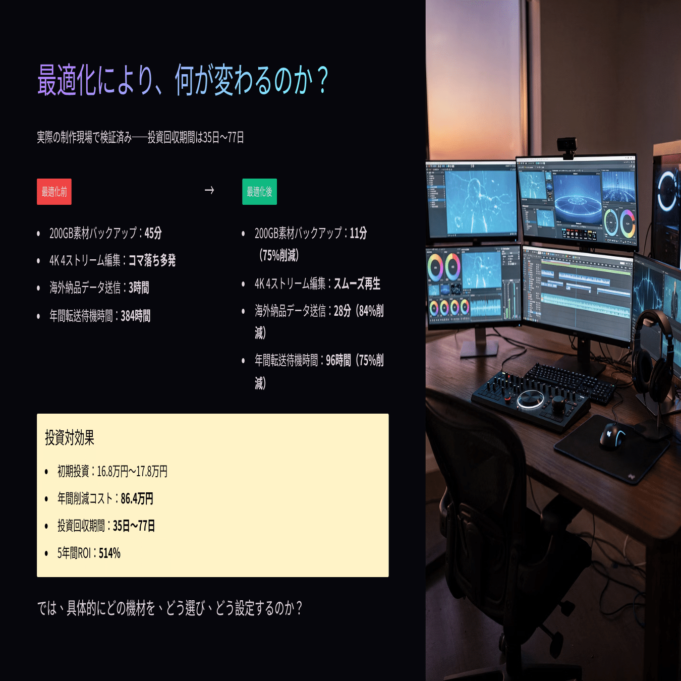 これは撮影、編集、配信、アーカイブのどの工程でも変わりません。