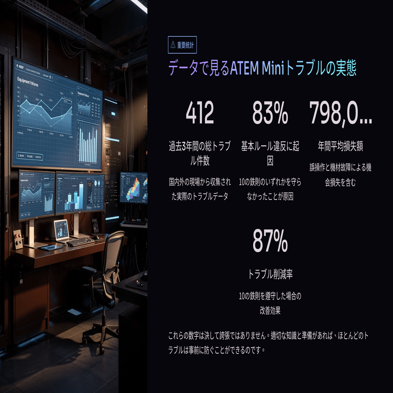 こうした事例は決して珍しくない。私が過去3年間で記録したATEM Miniのトラブル原因を分析すると、以下のような結果になる: