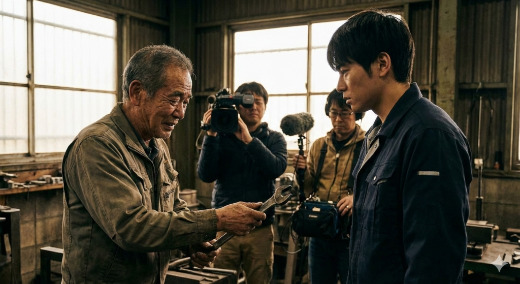 クライアントの要望は「技術の継承」を淡々と伝えることでした。しかし、撮影最終日、引退する職人さんが、工場で若い弟子に道具を手渡す瞬間、一瞬だけ見せた「言葉にならない安堵と寂しさ」の表情。カメラマンは咄嗟にその一瞬を捉えていました。