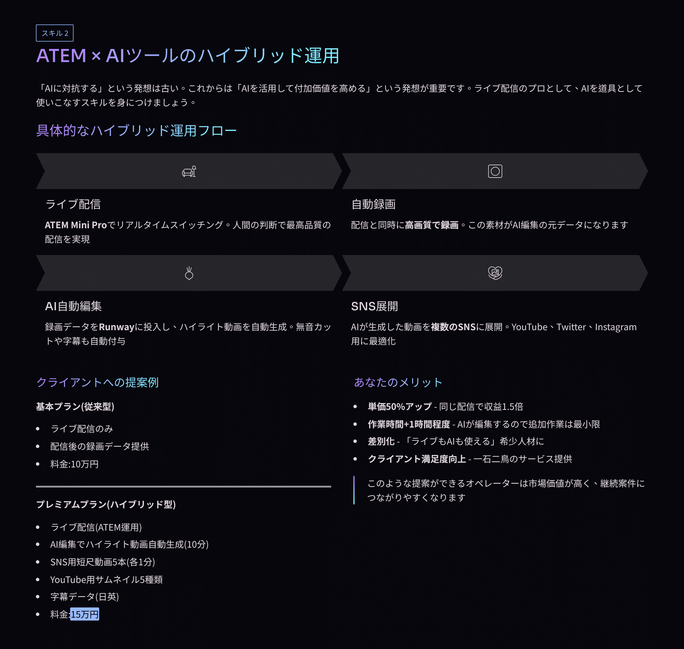 AI時代だからこそ、「ライブ配信だけ」ではなく、「その後の展開まで含めた提案」が差別化になります。