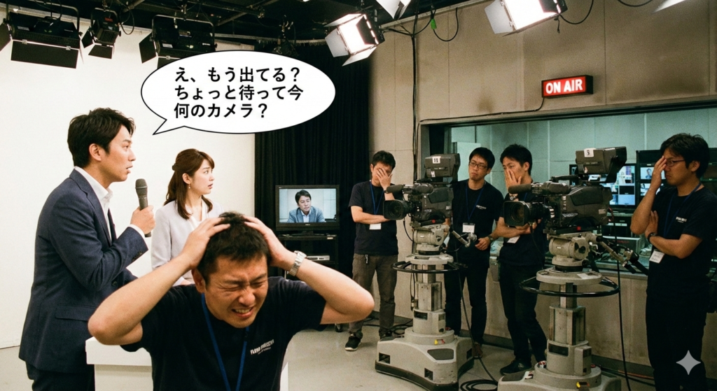 ちょっと待って今何のカメラ? 2026 1/11 現場あるある 2026-01-11 現場あるある 本番中なのに、 「え、もう出てる?」 「ちょっと待って今何のカメラ?」 と普通に素で喋り始める出演者。 そのたびにスイッチャー側は無言で「はい、今それ全部出てます…」と念じている。 現場あるある よかったらシェアしてね! URLをコピーしました! URLをコピーしました! 縦型ライブ配信市場の新時代を切り拓く YoloBox Ultra 完全ガイド Rec.709カラーバーを使ったモニター色調整の基本手順 この記事を書いた人 dreamcraft 関連記事 地方の小さな商店街 2026-01-10 あれ、録画ボタン押してたっけ? 2026-01-09 清掃の方が無言でフレームイン 2026-01-07 静かに反省会 2026-01-07 父へのサプライズ動画 2026-01-07 「今」に過去の喜びが蘇った 2026-01-07 むかしむかしのことでした。 2026-01-07 時間を超えて、愛する人を連れてきてくれるタイムカプセル 2026-01-07 コメント コメントする コメントをキャンセルコメント ※ 名前 ※ メール ※ サイト 次回のコメントで使用するためブラウザーに自分の名前、メールアドレス、サイトを保存する。 Δ