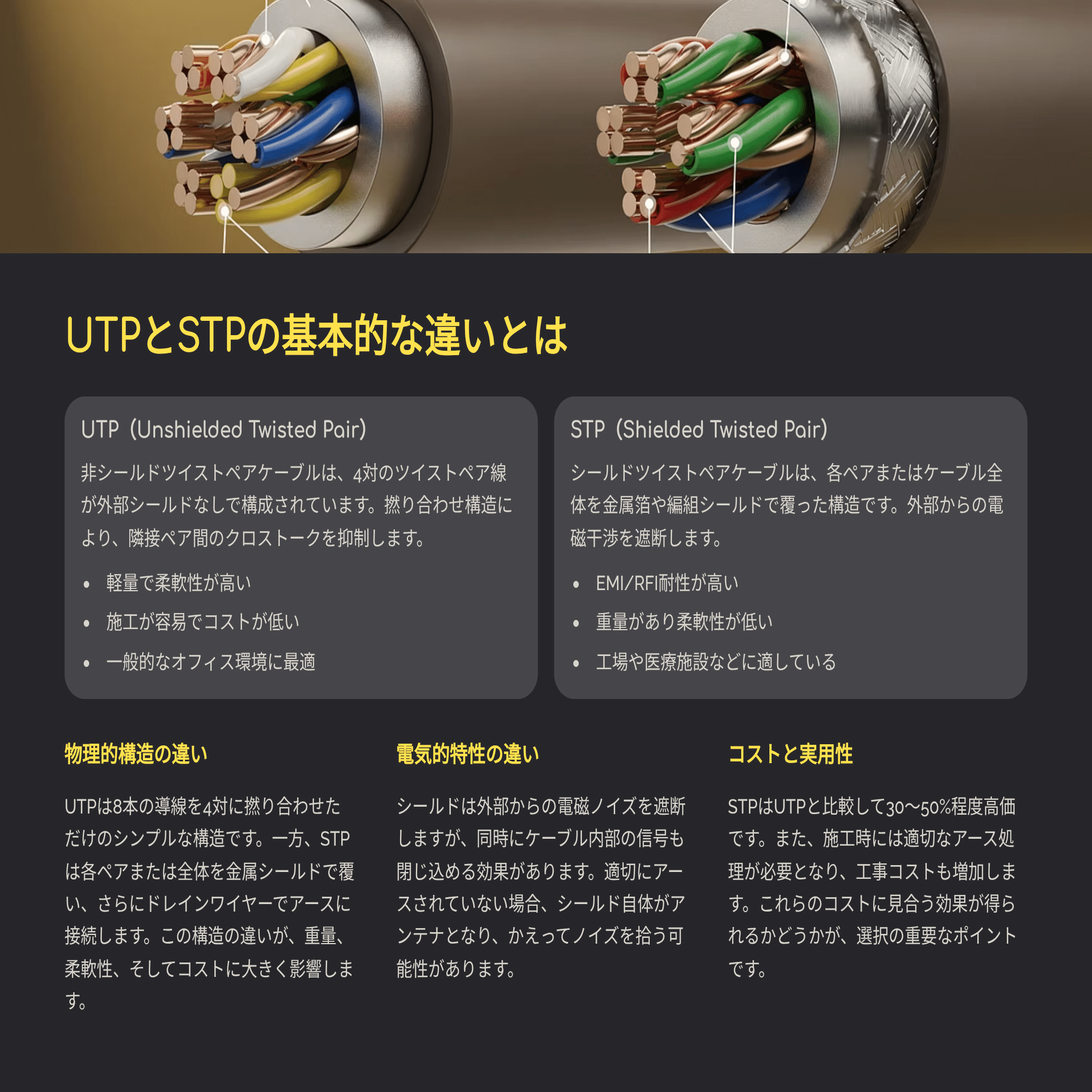 - UTPとSTPの決定的な違い——なぜ「シールド=高性能」ではないのか