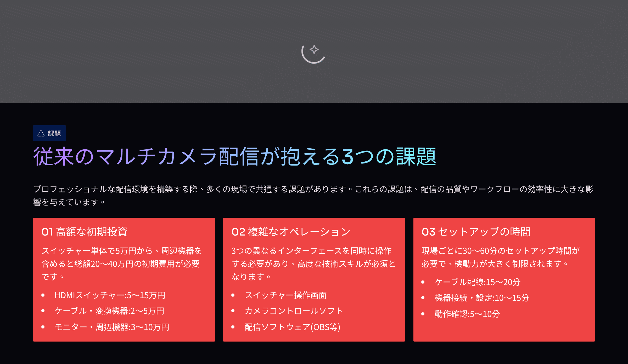 マルチカメラ配信を検討する際、多くの配信事業者が直面する3つの課題があります。