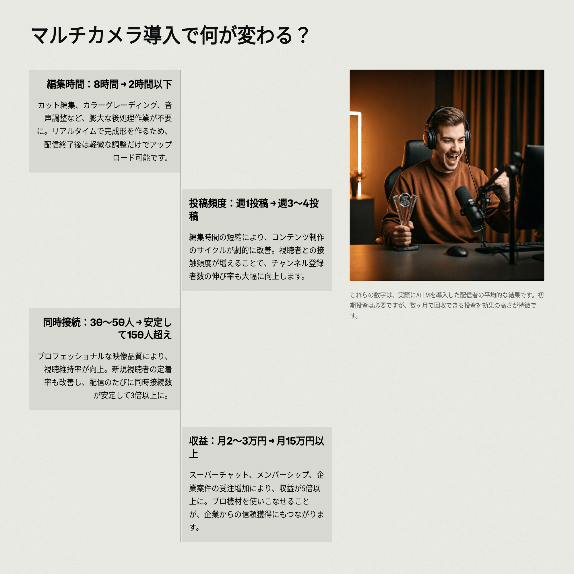 「ATEMは持ってたけど、正直キレイに使えてなかった。この記事の第3章を読んで、やっと”プロっぽい”配信ができるようになりました」(ゲーム実況者・登録者8万人)