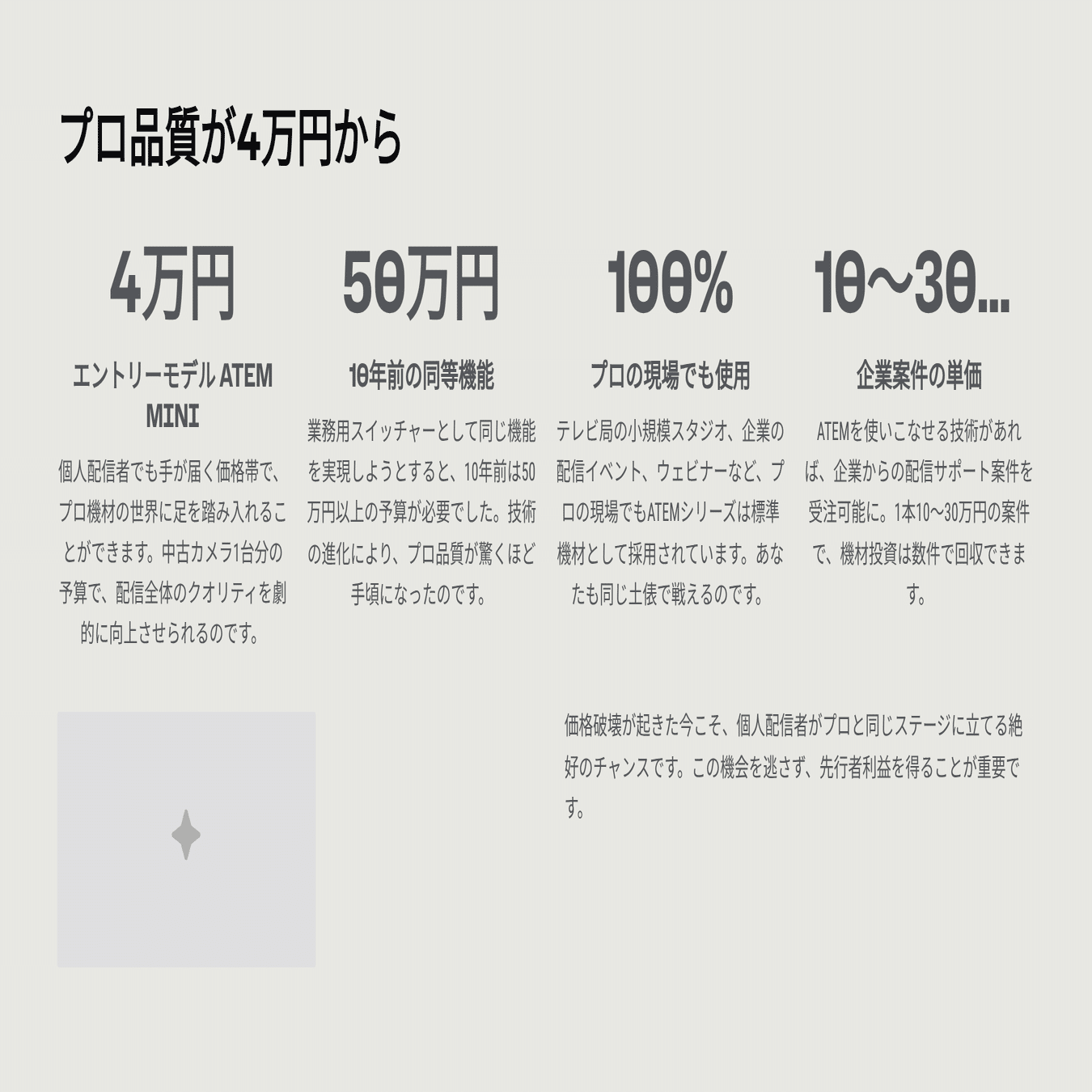 ATEMの機材代(約4万円)の約12%。