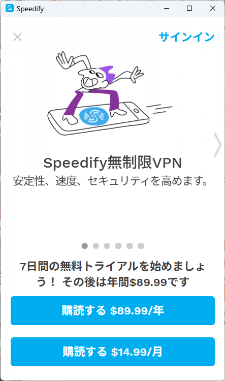 Speedifyは月間2GBまで無料で利用できるVPNサービスで、無料版にはデータ制限があります。有料プランにアップグレードすればデータ量無制限になりますが、無料版はあくまで試用目的であり、本格的な利用には回線ごとの有料プランの検討が必要です。