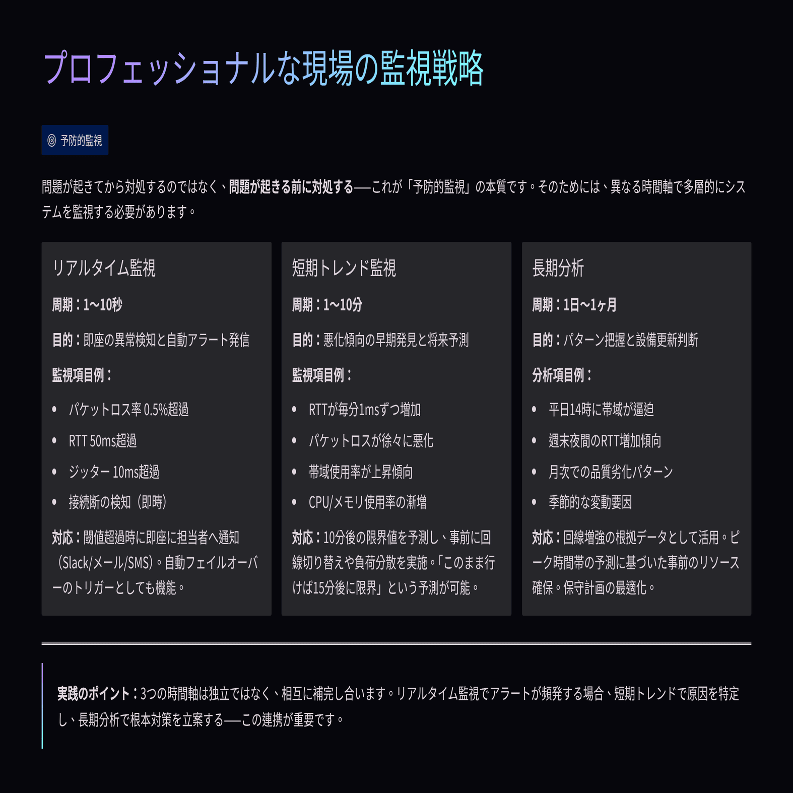 では、プロフェッショナルな現場では、何を監視し、どう対応しているのか?