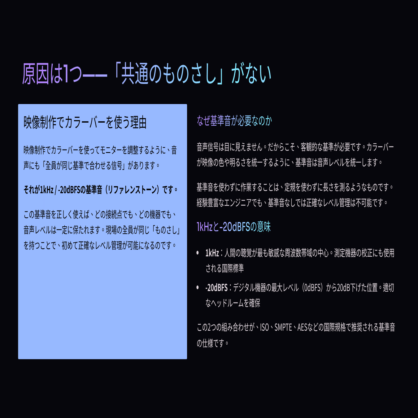 音声レベルが合わない現場は、なぜ繰り返し事故を起こすのか — 基準音(リファレンストーン)完全ガイド