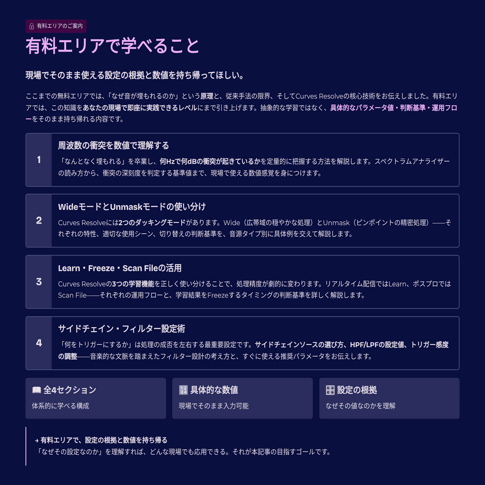 Curves Resolveはこの「分離感」を、音量操作ではなく