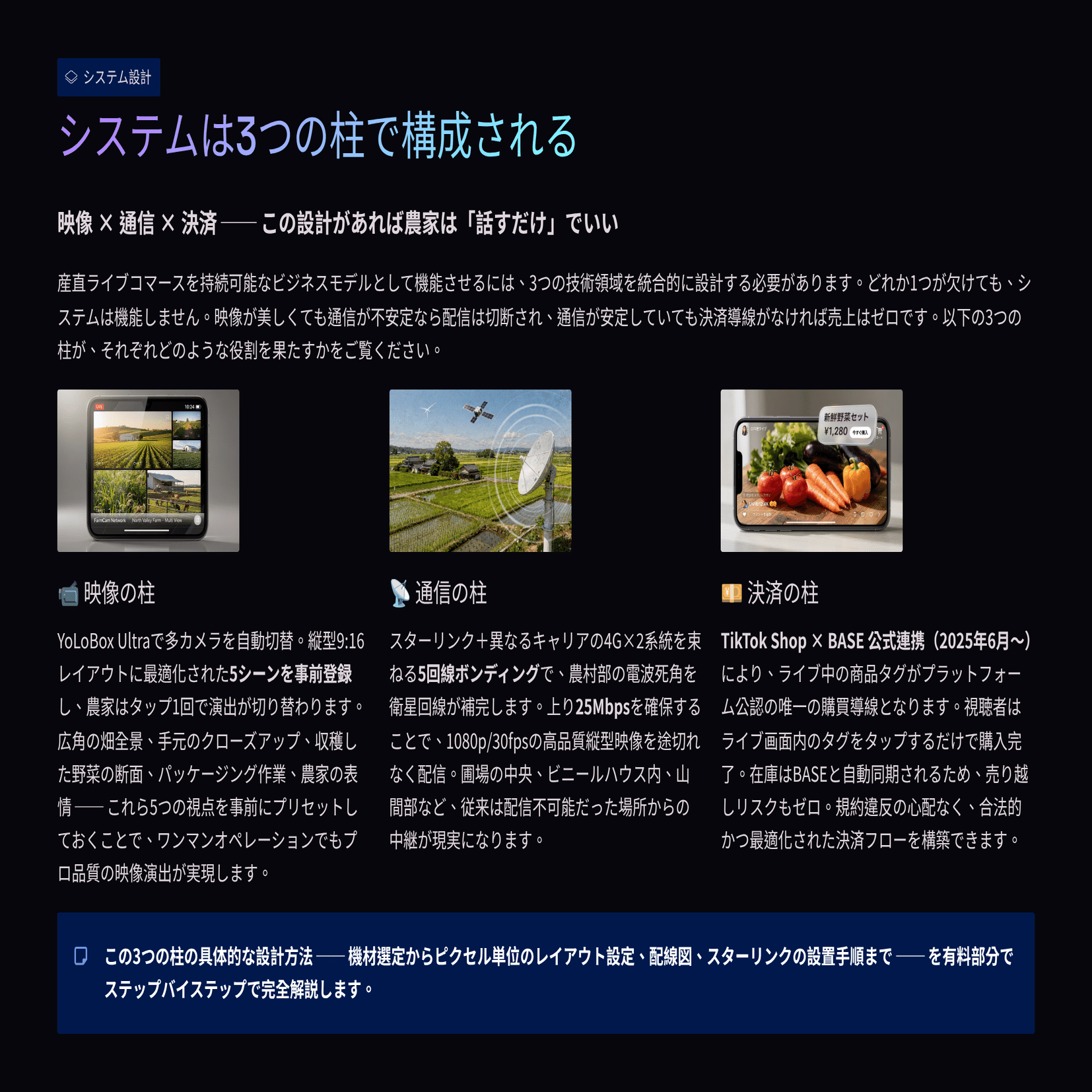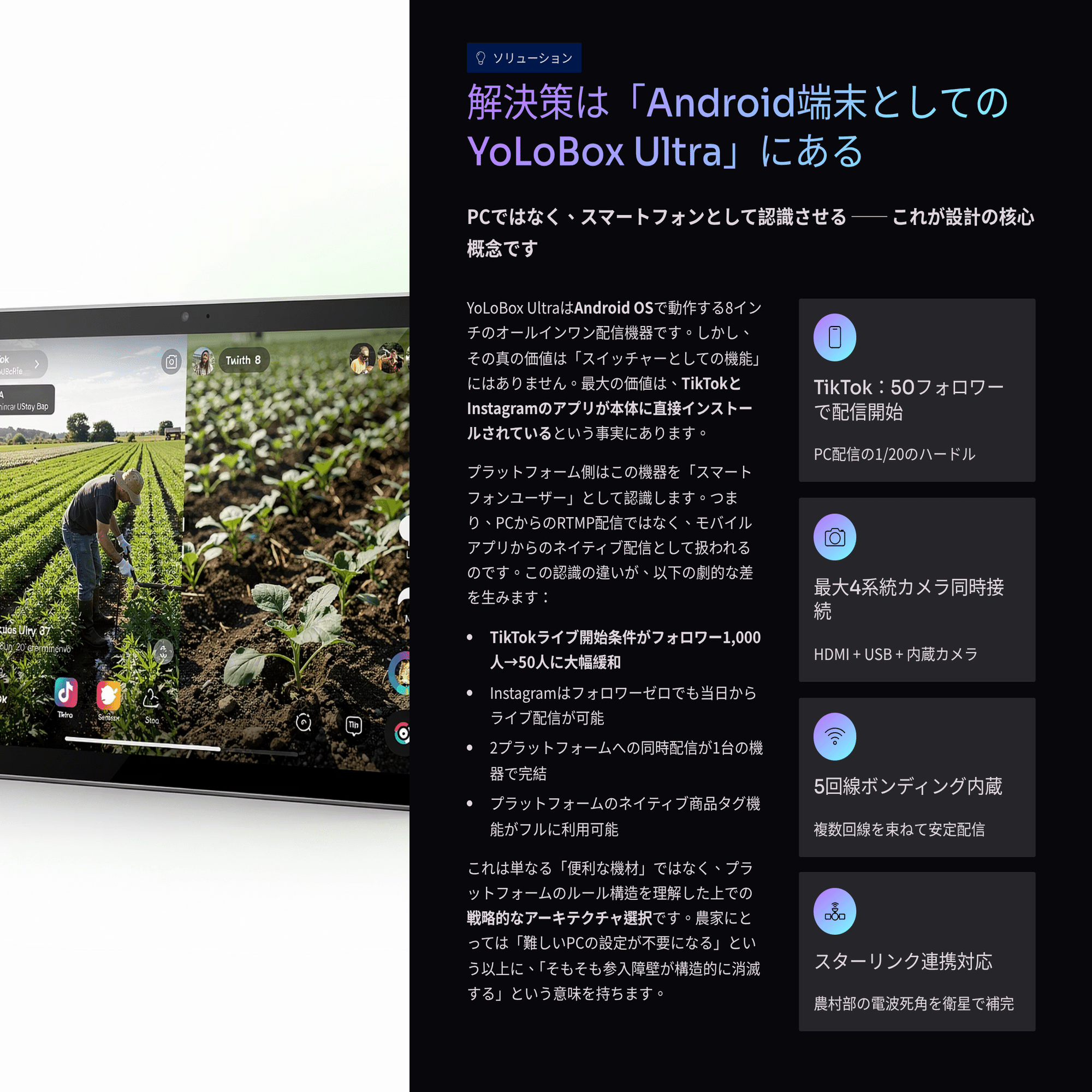 「プロ品質の配信」と「農家が1人で運用できること」は、