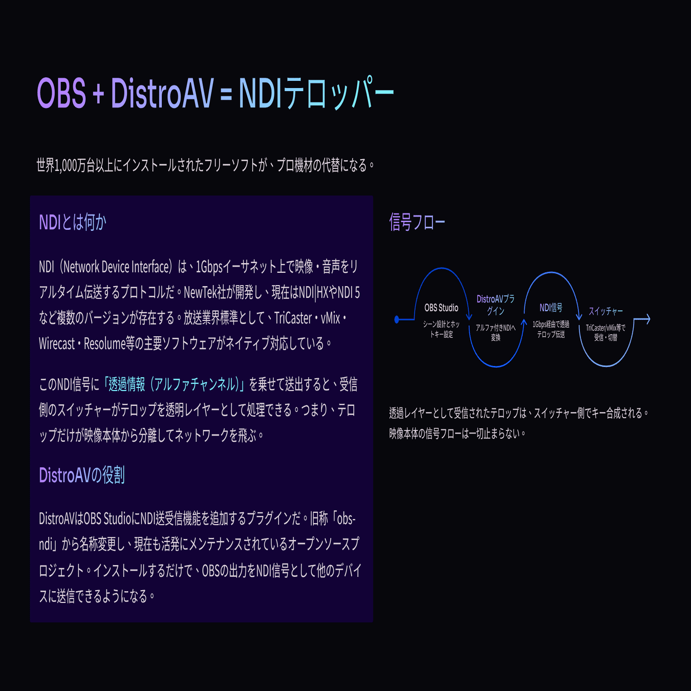 OBS Studio + DistroAVで、プロ品質の透過テロップをMacBookからIPネットワーク上に流す