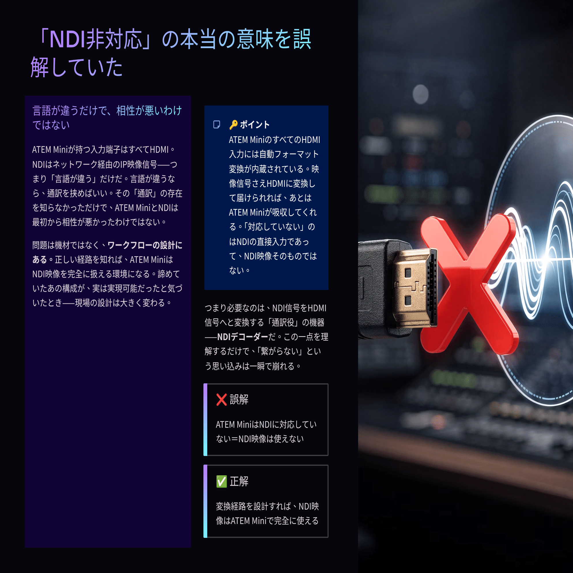 - ATEM MiniとNDIデコーダーの接続が「なぜ機能するのか」の技術的背景