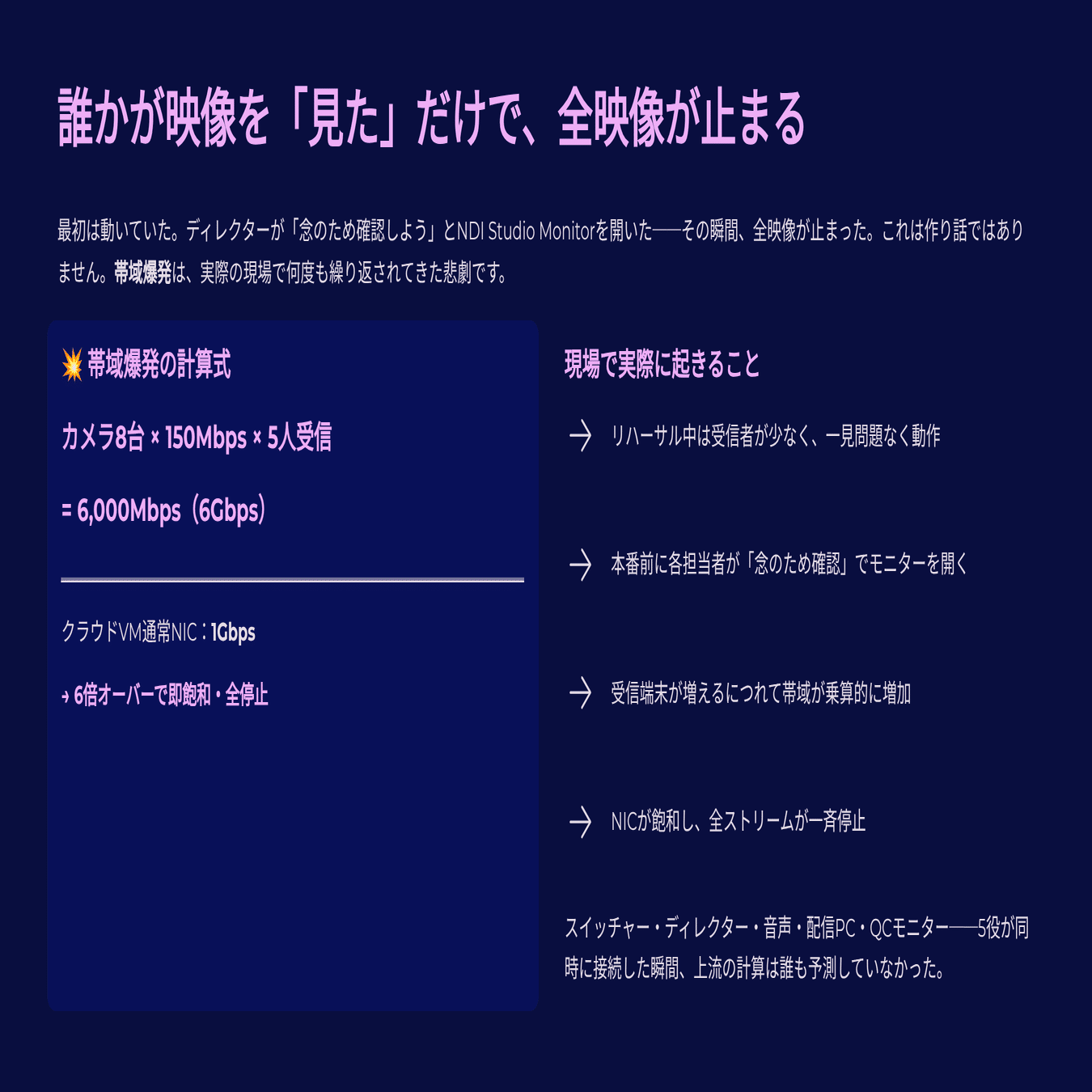 加えて、現場で最も被害が大きい「帯域爆発(Bandwidth Explosion)」のメカニズムと、それを防ぐプロの具体策も詳細に説明する。