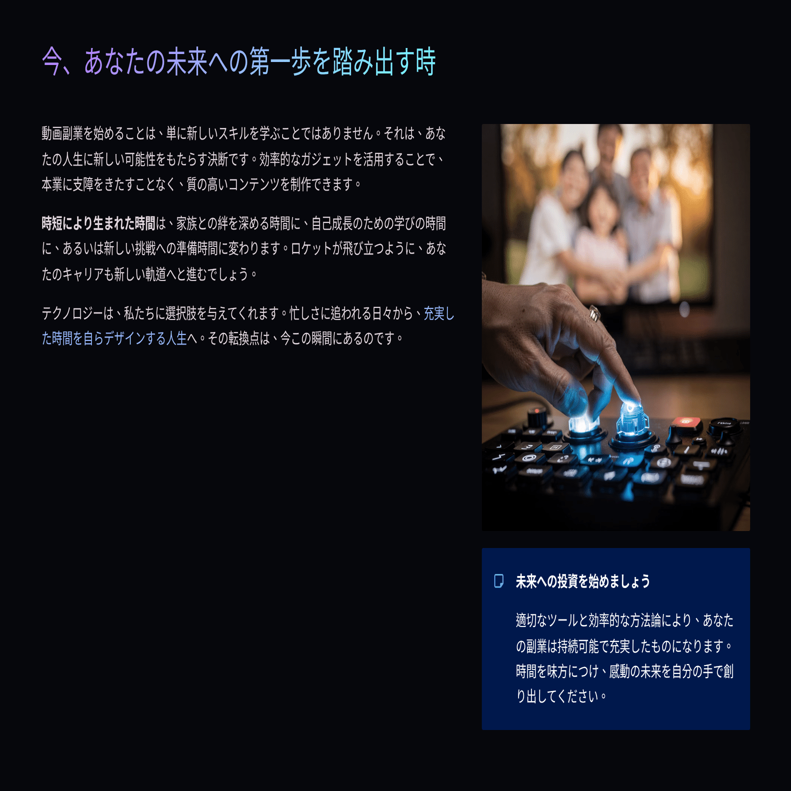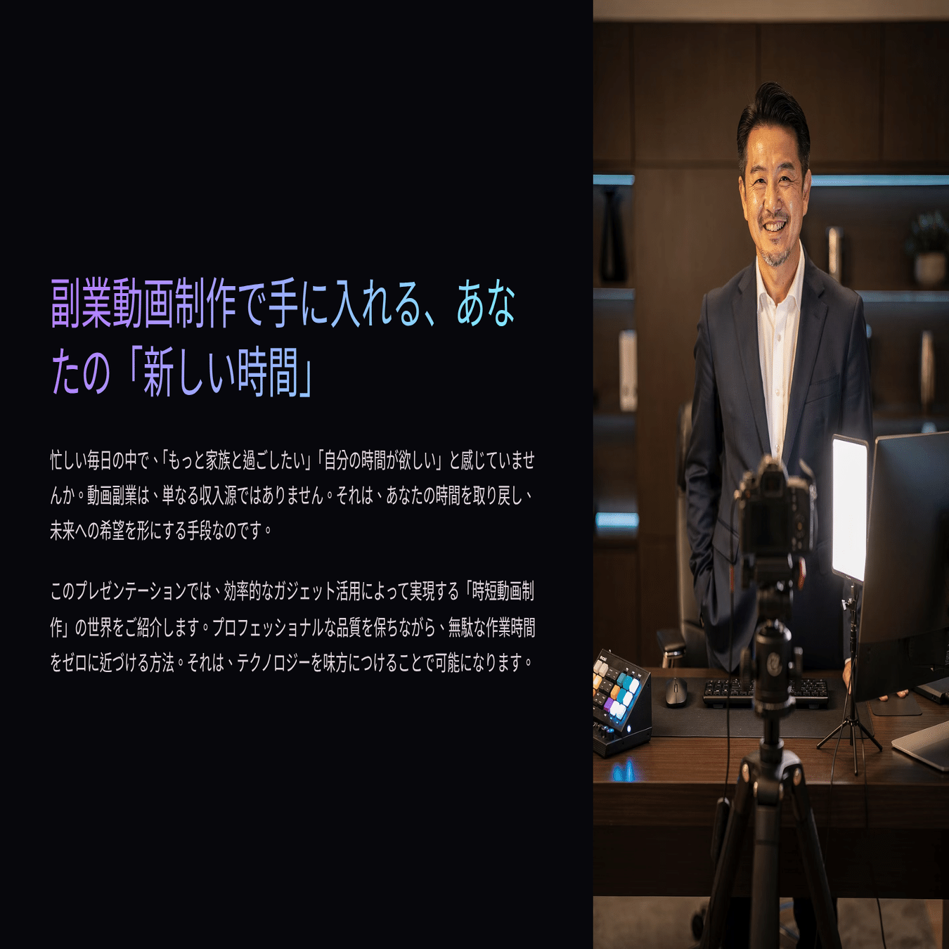 【残業ゼロでプロの動画を】30代・40代サラリーマンのための「時間貯金」動画副業術