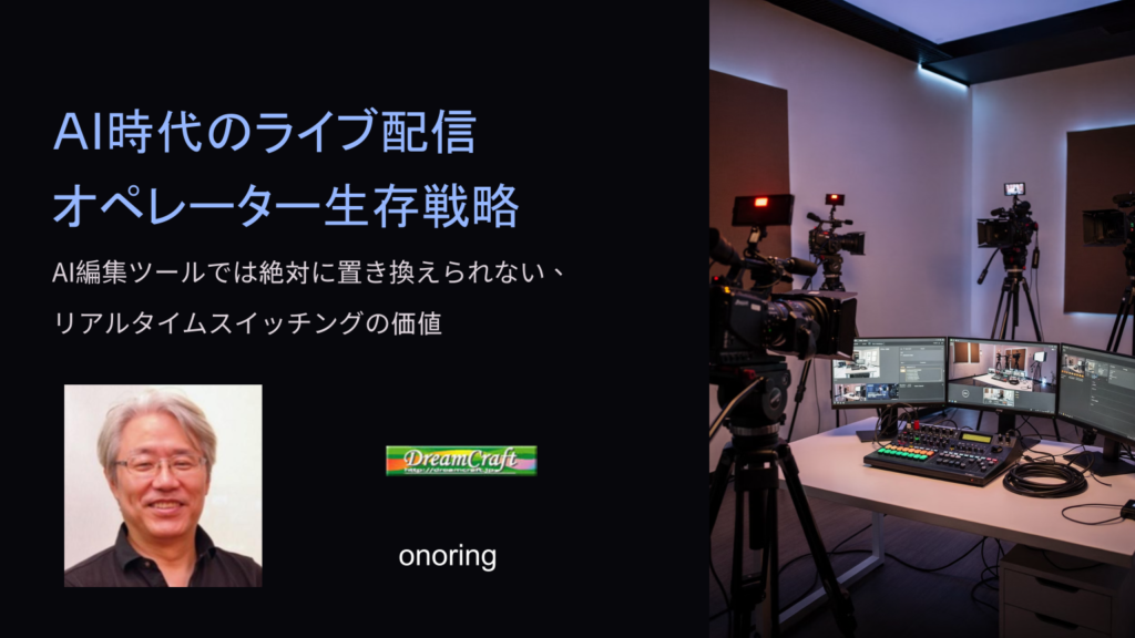 AI編集ツールでは絶対に置き換えられない、リアルタイムスイッチングの価値 2025年、AI動画編集ツールが驚異的な進化を遂げています。Runway、Sora、Adobe Firefly Video、Veo 3...テキストを入力するだけで高品質な動画が数分で完成する時代が、もう目の... -