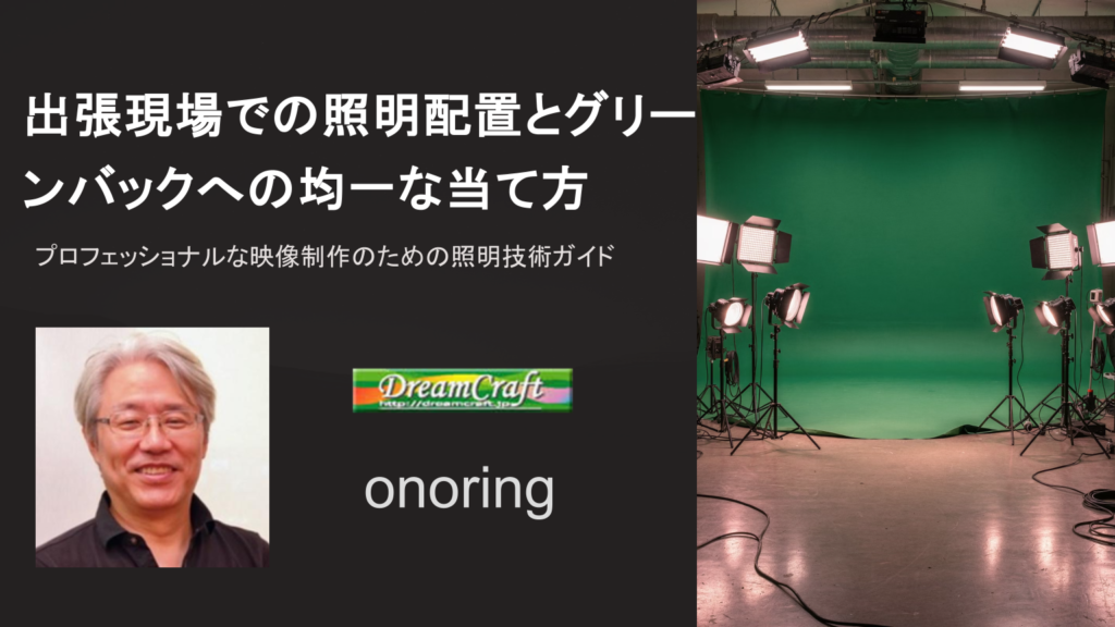出張現場での照明配置とグリーンバックへの均一な当て方