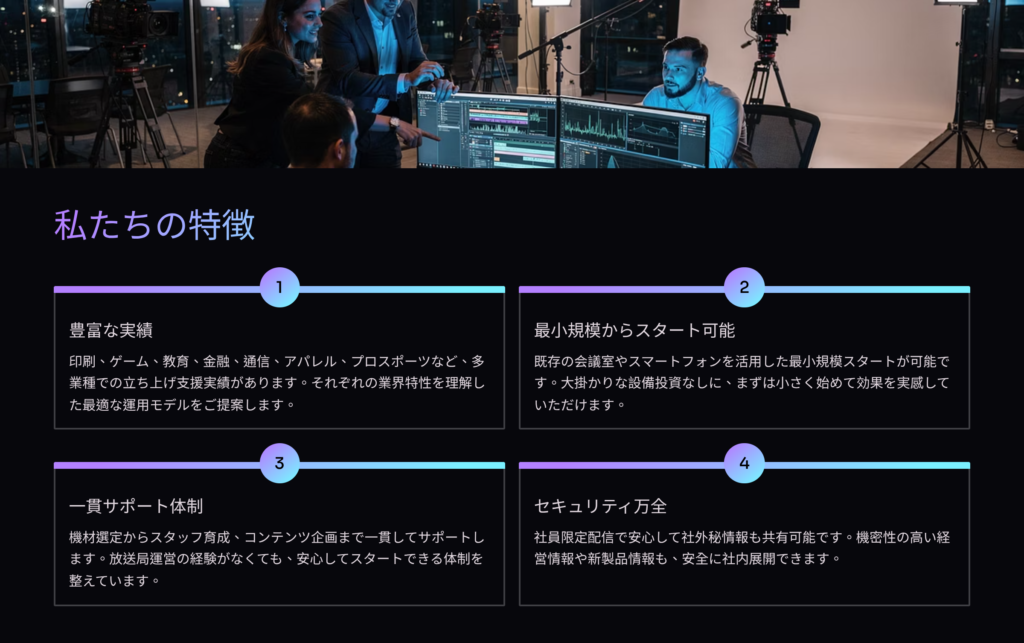 デジタルに強い若手と、ビジネスを知り尽くしたベテラン。社内放送局という場で両者が協働することで、互いの強みを活かした新しい価値が生まれます。